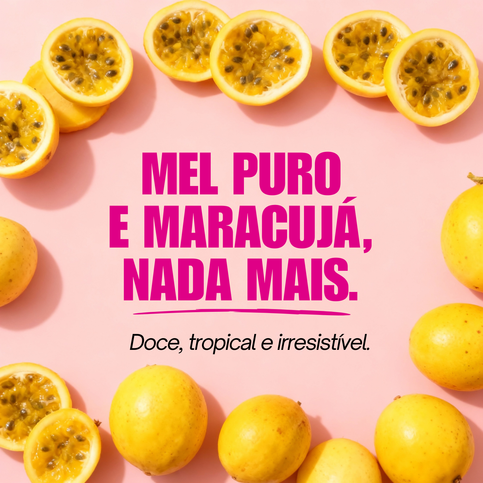 Sem açúcares, conservantes, corantes ou adoçantes. Apenas mel e maracujá.
